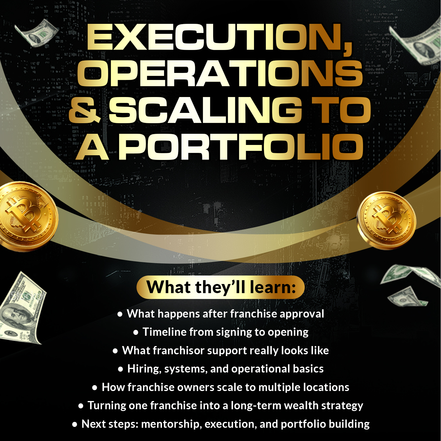 No prior experience is required. This challenge is designed for individuals who are new to franchising as well as current franchise or business owners who want to refine their strategy, expand their portfolio, or scale their franchise to consistent cash flow. Whether you’re exploring your first franchise or looking to grow beyond where you are now, this mentorship meets you where you are.